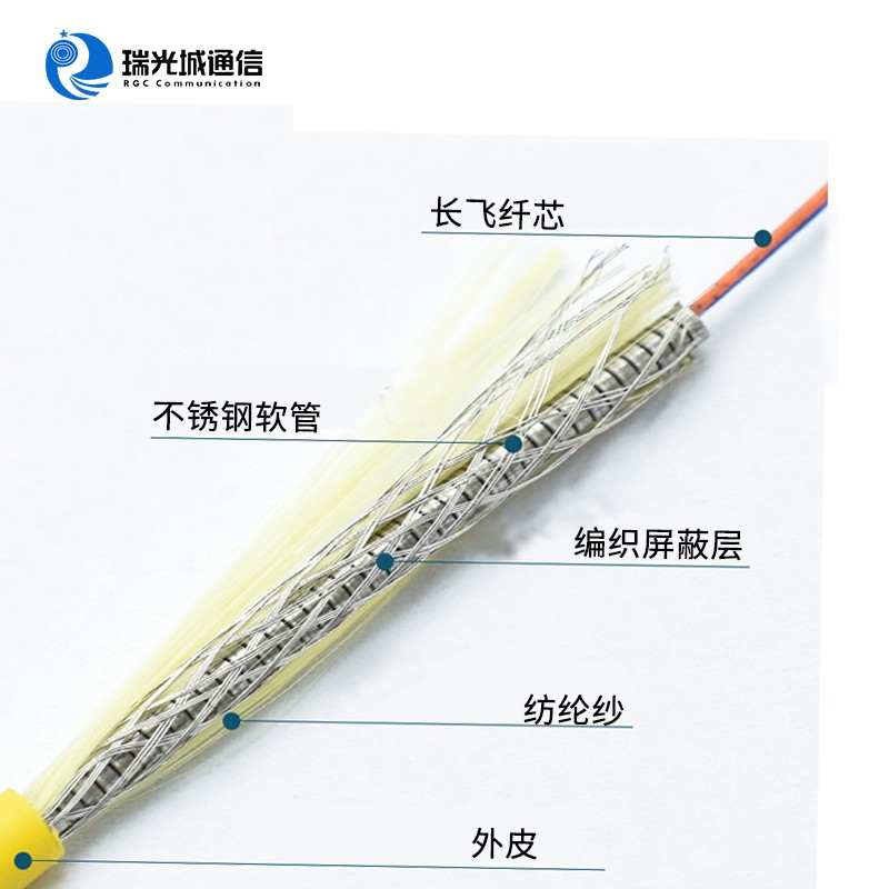 1.层绞式光缆结构,螺旋铠管加编织网多重保护,使光缆可以承受更大的拉力